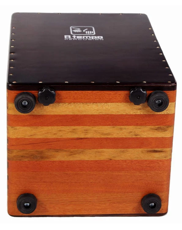A TEMPO Percussion’s Cascada Tuneable Flamenco cajón is constructed with a solid wood frame featuring Tropical Walnut and Mohena woods in a natural gloss finish. It features a stunning, cascade inlay pattern, dovetail joints and is made using Furniture-grade construction techniques which provides superior strength.