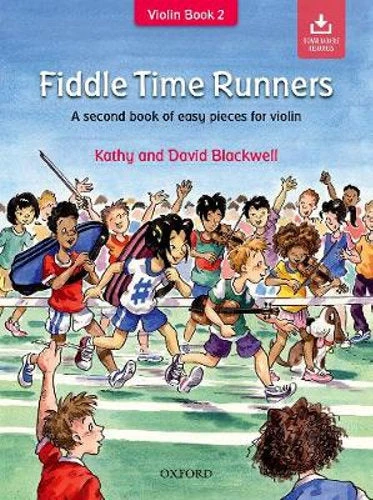 Fiddle Time Runners is a second book of easy pieces for violin, following Fiddle Time Joggers. It includes traditional tunes and original pieces, plus plenty of duets. The audio provides performances of all the pieces to play along to. The violin is clear for the player to follow and play along to, and there are assorted percussion and bass and drumkit for the jazz numbers.