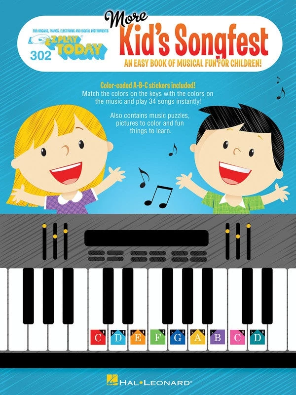 This easy book of musical fun for children includes 6 pages of instructional material including how to read notes, E-Z Play® Today notation,basic rhythm, and more. It also includes color-coded A-B-C stickers so children can match the colors on the keys with the colors on the music, plus music puzzles, pictures to color, and more. Songs include: ABC • Candle on the Water • Do-Re-Mi • The Hokey Pokey • Lean on Me • Stand by Me • Winnie the Pooh • Yellow Submarine • and more. Includes color pages throughout.
